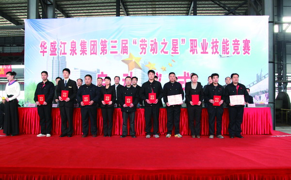 胡冰主持啟動儀式,王廷寶致辭,人力資源和社會保障局局長鄭月慶和楊傳信分別宣讀關于表彰華盛江泉集團“十佳勞動之星”和“十佳帶徒師傅”的決定,主席臺領導為“十佳帶徒師傅“和“十佳勞動之星“獲得者頒發證書和獎金,王平作重要講話,彭向榮宣布第三屆“勞動之星”職業技能競賽正式啟動。