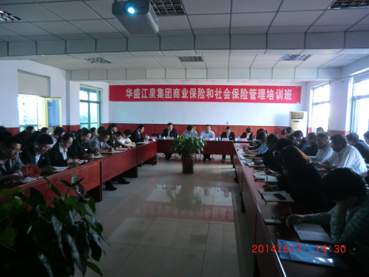 2014年5月7日下午14時(shí),華盛江泉集團(tuán)人力資源部組織開(kāi)展商業(yè)保險(xiǎn)與社會(huì)保險(xiǎn)管理培訓(xùn)班,參加培訓(xùn)的人員有華盛江泉集團(tuán)人力資源部部長(zhǎng)李新勝、集團(tuán)工會(huì)主席付冬明、人社中心主任楊琳琳、法務(wù)部法律專(zhuān)責(zé)劉學(xué)權(quán)、集團(tuán)人力資源部社保專(zhuān)責(zé)宋紅、商業(yè)保險(xiǎn)專(zhuān)責(zé)朱永宇、建筑公司安全科陳慶鋒以及各單位社保、商業(yè)保險(xiǎn)負(fù)責(zé)人與經(jīng)辦人。